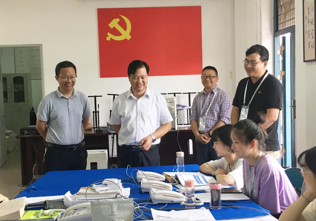7月19日上午,校长陈光亭在临海校区学校招生录取现场看望慰问参与招生工作的师生。