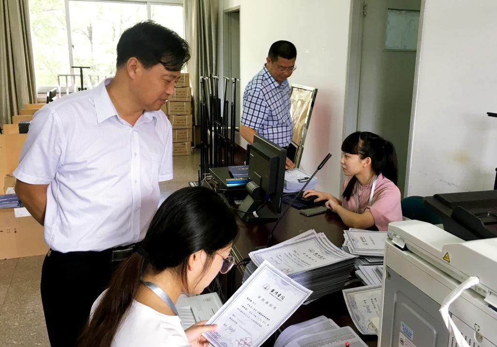 随后,陈光亭还查看了今年新生入学材料,询问了录取通知书发放情况,慰问了现场工作的师生,向他们询问了解在校学习生活情况,勉励他们充分用好暑期时间,做好宣传咨询工作,力争生源质量再上台阶。