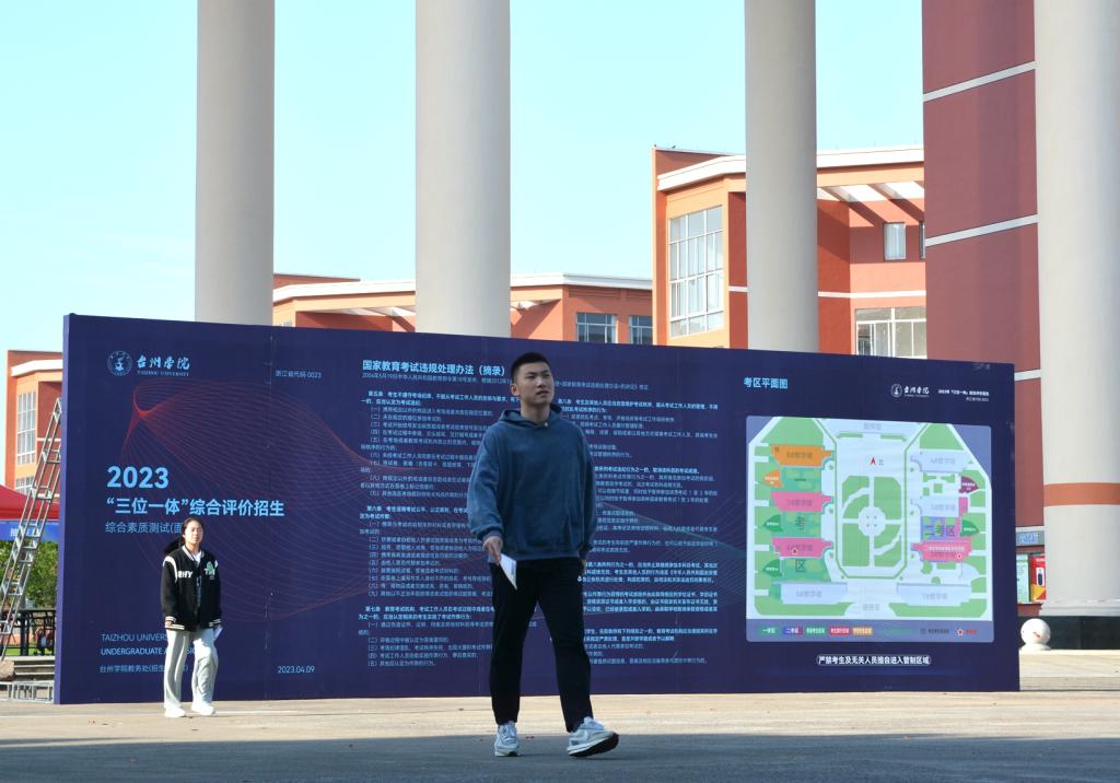 二是校园氛围更加浓郁。考试期间,学校教务处(招生办公室)牵头,各学院参与对临海校区涉考区域校园氛围进行了进一步优化,涉考物品及相关标识的“台院化”特征进一步增强。现场,统一制作的考试标识清晰可辨。校内综合素质测试打卡点前人头攒动,吸引着应考的考生和家长争相合影留念。本科招生卡通形象:昭昭 玩偶装扮及学校招生文创周边深受广大考生的喜爱,成为现场考生的“新宠”,为严肃的考试环境增添了活泼的元素。